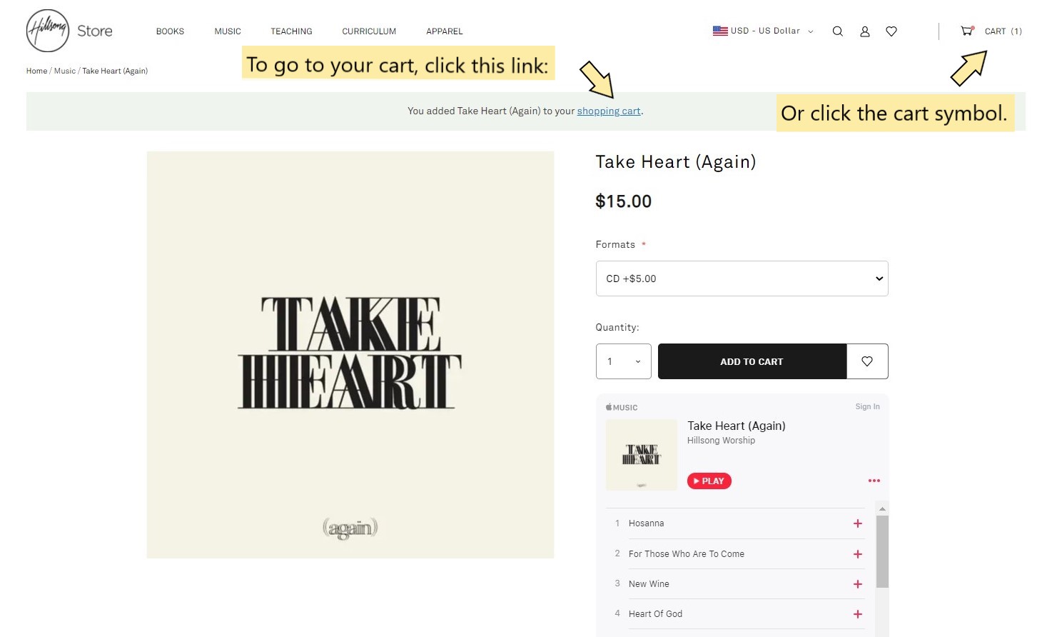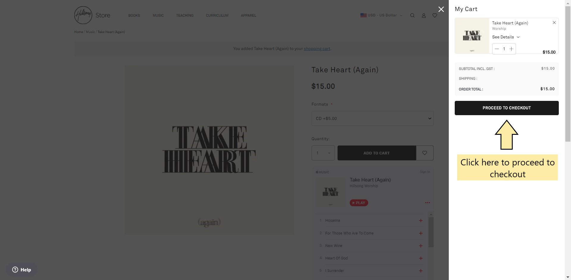 On the webstore, hillsongresources.com, choose the item you would like to purchase and click "Add to Cart". When you are ready to checkout, click the checkout button.