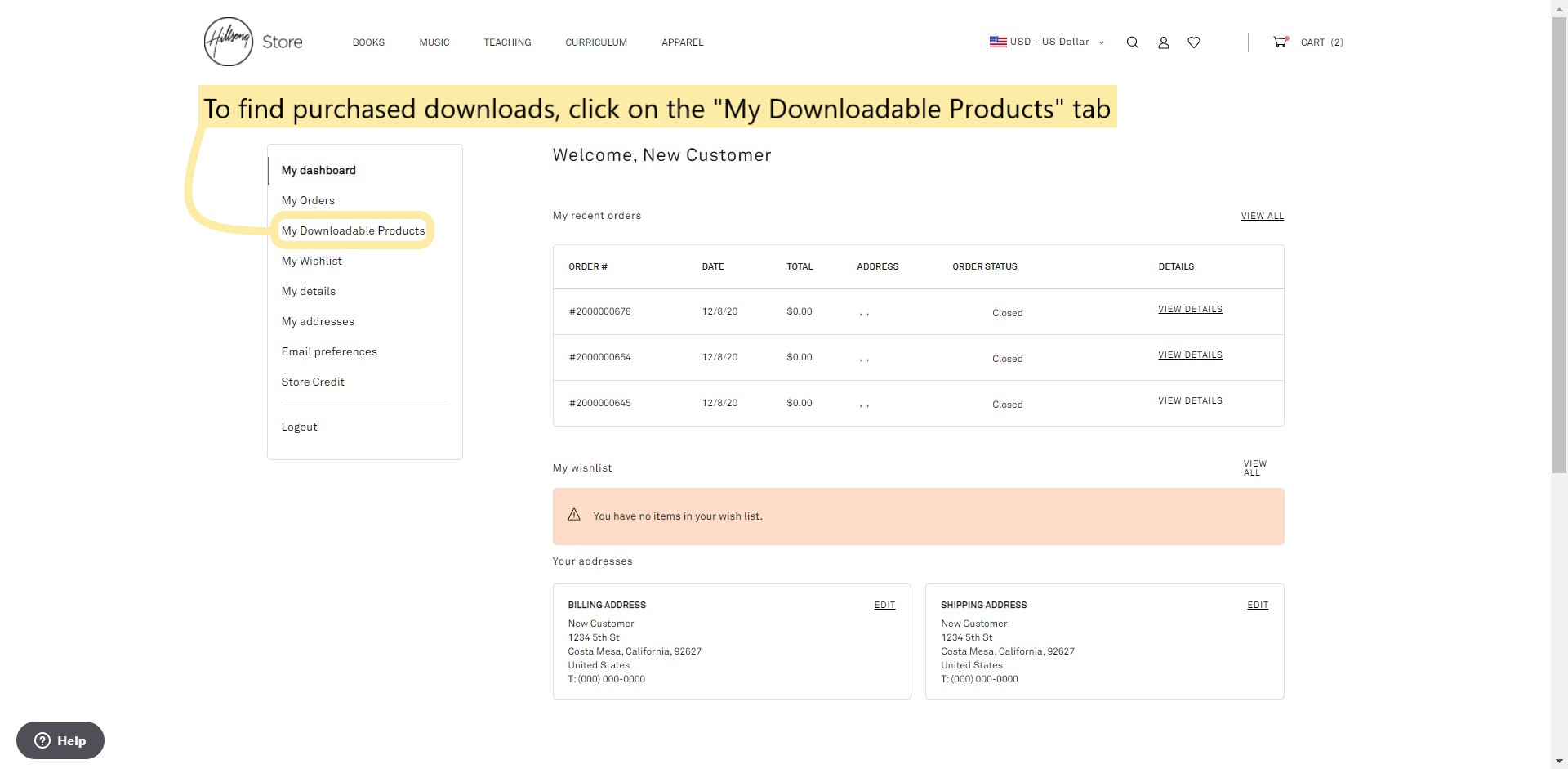 For further assistance, click the "Help" button to chat with a representative or email our team at resources@hillsong.com.