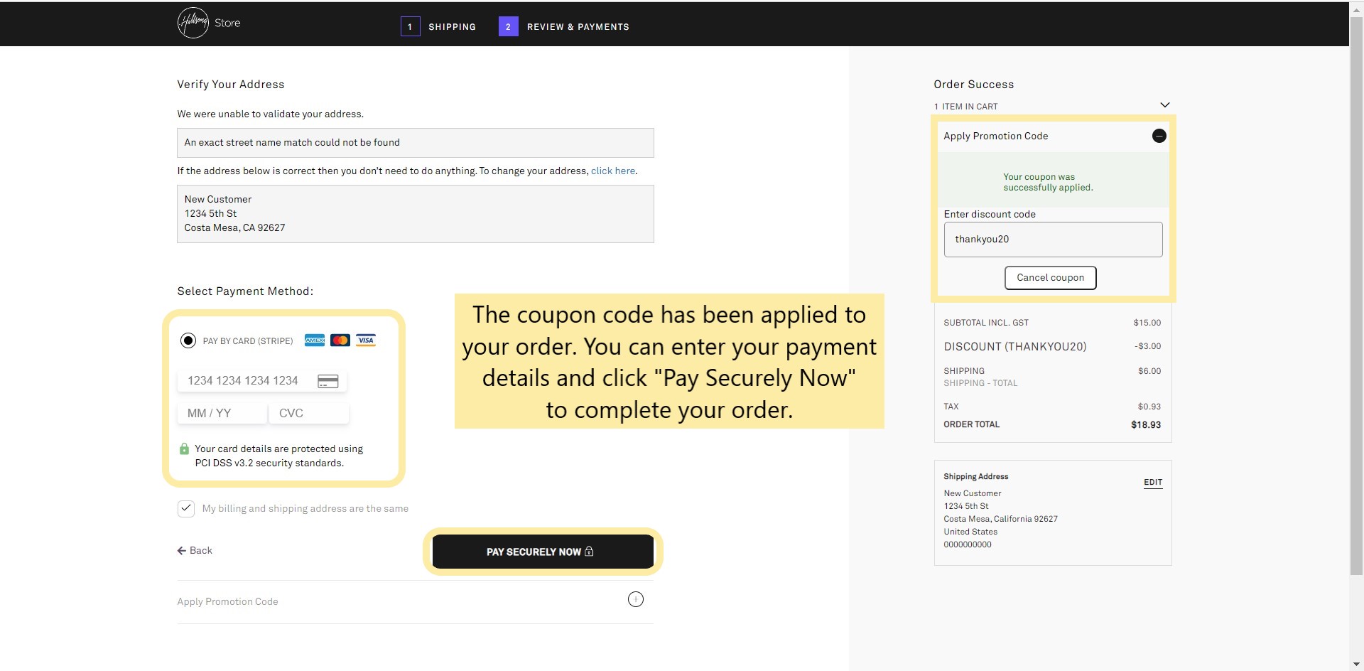 The coupon code has now been applied towards your order. You can now enter your payment details to submit the order